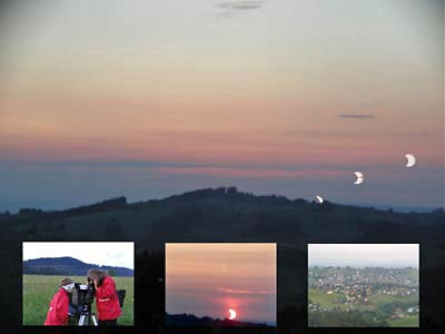 Ringförmige Sonnenfinternis vom Samstag 31. Mai 2003 05:35 bei Sonnenaufgang, kurz nach dem Finsternismaximum beobachtet von der Weisseg oberhalb Trogen von Julia und Livio Nagel, mit ihrem Grossvater.
